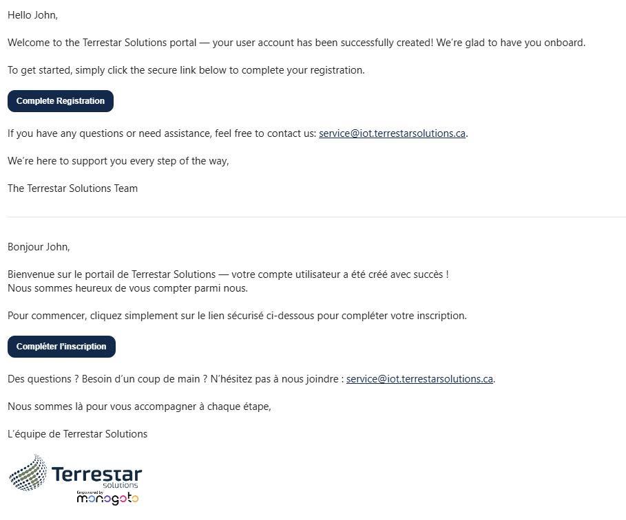 1. Once your Terrestar Solutions service agreement has been signed, our team will create your account on our client portal.