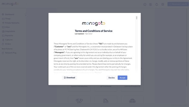 4. On the first portal login, you will need to agree to the terms and conditions of our partner Monogoto.