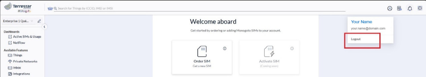 1. To log out of the Terrestar Solutions portal, click the user profile icon at the top bar.