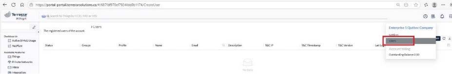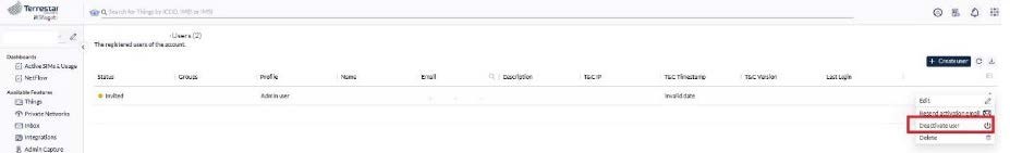 As an administrator of the Terrestar Solutions portal, you can manage other users’ accounts by viewing the list of users, and then editing their information, re-sending activation emails, deactivating accounts or deleting them.