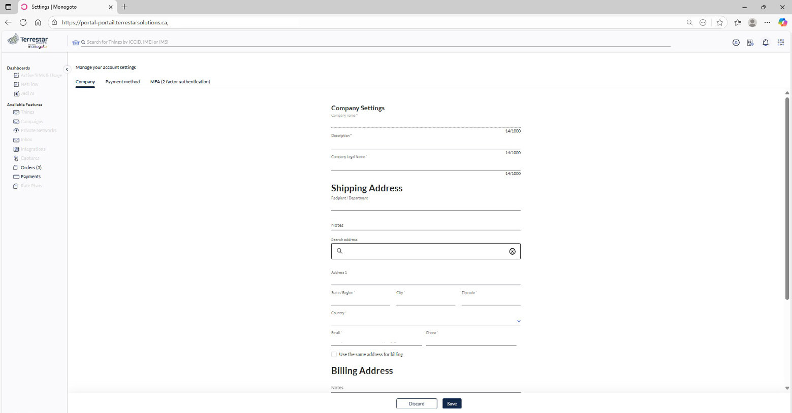 6. Enter the required updates in the company information fields. Please note that all fields marked with an asterisk (*) are mandatory.